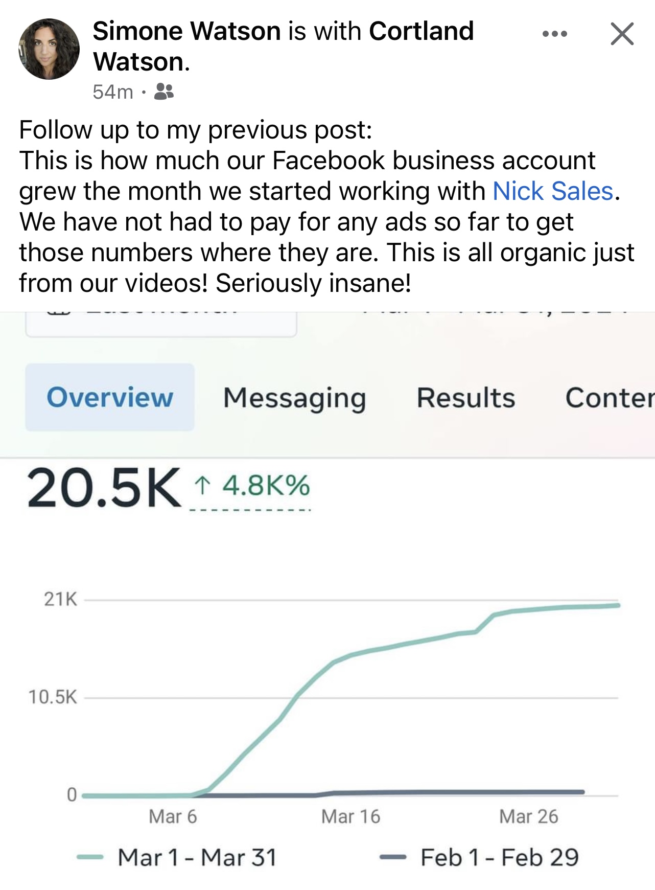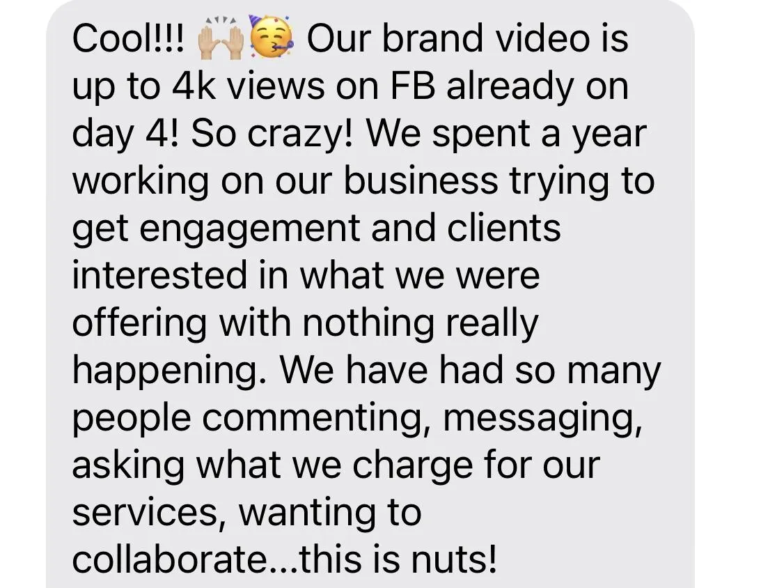 Our clients have seen incredible returns from this system, such as 5 million views from only 2 days of shooting, an ROI of over 100x, a social media follower increase of over 1000%, and 3x more views on their social media videos. We have yet to work with a client who hasn't seen incredible results.